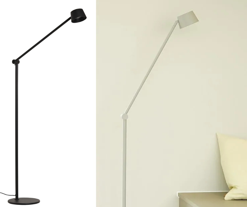Antidark Derection Gulvlampe taler med det slanke minimalistiske formsprog, der er fokuseret på funktionelle detaljer. Lampen imødekommer både visuelle og praktiske behov og passer perfekt til læsekrogen i stuen eller kontormiljøet. De justerbare elementer af lampens krop gør det muligt at tilpasse højde og vinkel, mens lampehovedet både kan vippes og drejes, så lyset kan rettes præcist efter ønsker.